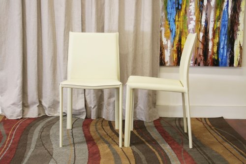 | The crawford chair has all the makings of a classic. From its smooth leather to the versatile, contemporary design, this elegant chair is a longstanding favorite for a simple yet stunning dining area. Each chair is made with a steel frame, light foam padding, as well as smooth ivory bonded leather on the seat and legs. Finishing touches include white stitching along the edges as well as black non-marking feet. The crawford chair is fully assembled, is sold in sets of two chairs, and is also available in black or brown sold separately. Overall dimensions: 32-1/4h by 19-1/2l by 18 W; seat: 18-Inch W by 17-1/2-Inch D by 20-Inch H. ...Read more |
